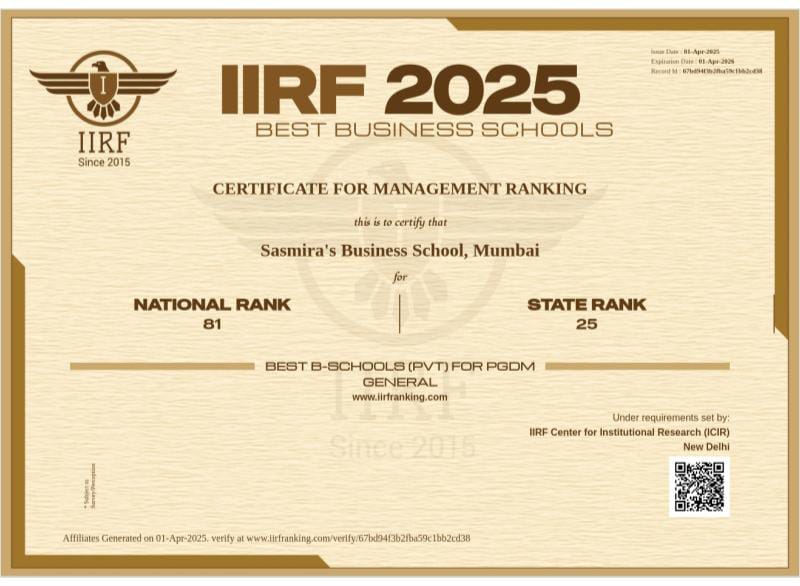 ⦁ State Rank – 25, National Rank- 81: IIRF 2025- Best Business Schools